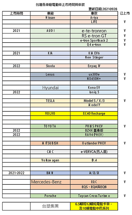 各車廠充電規格